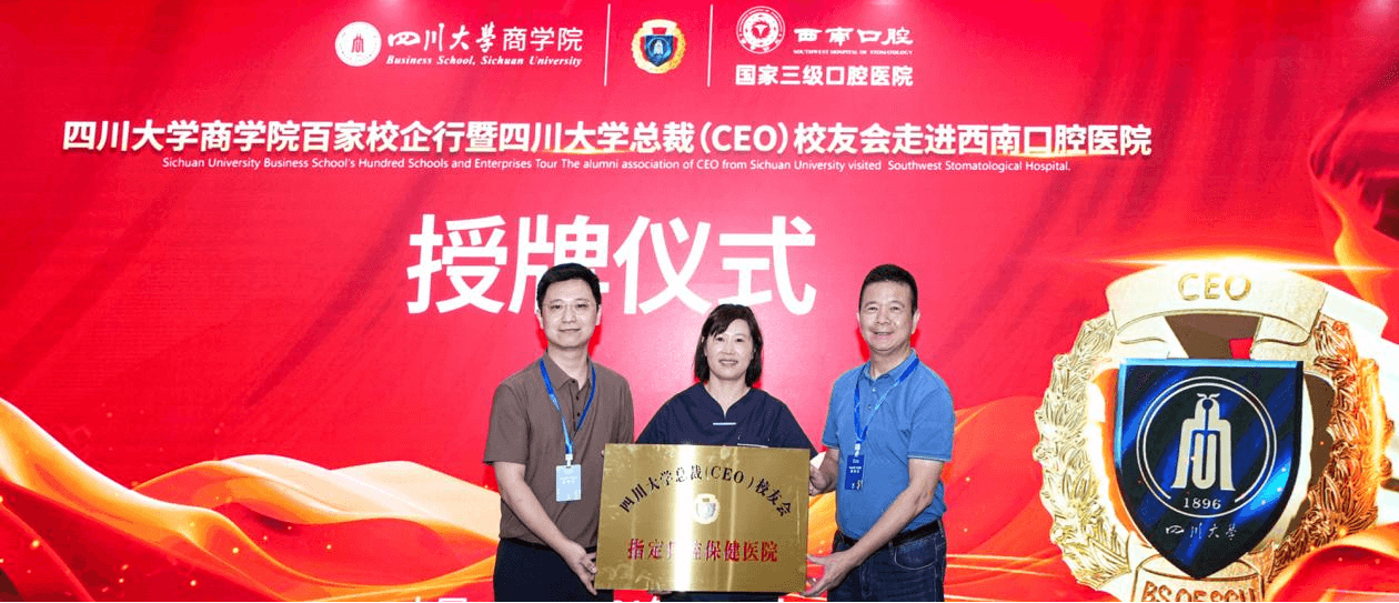 四川大学商学院,四川大学总裁(CEO)校友会、为西南口腔医院进行了指定口腔保健医院正式授牌,一方是信任与托付,一方是责任与担当。